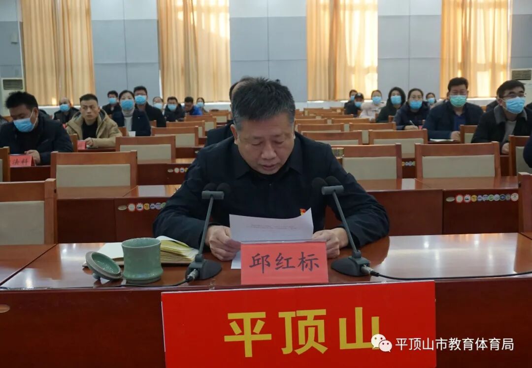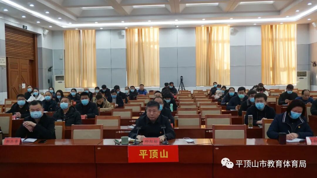 平顶山市教体局分会场设在局机关二楼会议室,局班子成员,驻局纪检监察组人员,局机关各科室负责人和二级机构党政负责人参加了会议。